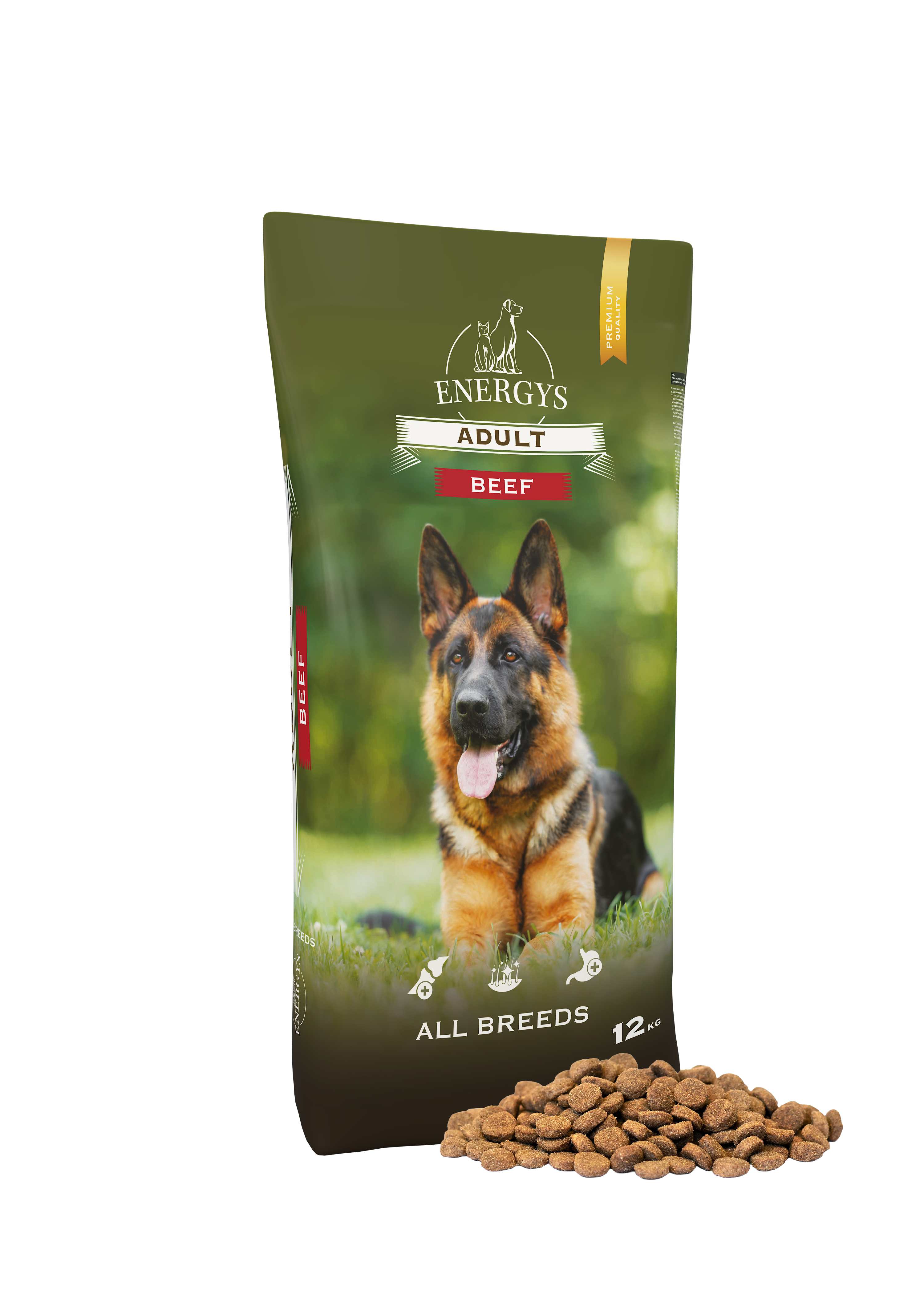 24 % dehydrated beef, wheat, corn, wheat bran (source of fibers), 6,5 % poultry fat, dehydrated beef and pork protein 6 %, wheat flour, 2 % dried beet pulp, hydrolyzed poultry protein, minerals, inulin 0,5 % (source of FOS), 0,5 % yucca shidigera, chondroitin sulfate 270 mg/kg, glucosamine chloride 200 mg/kg.